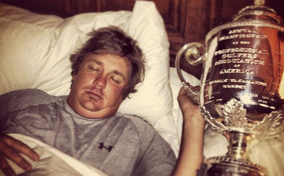 When I first saw this picture, I laughed out loud. This is exactly what I mean when I say he means business but he also knows how to have fun. Only Duff could make a serious life achievement, such as winning the PGA Championship, into a fun, lighthearted scene by posing to sleep with the Wanamaker trophy.
