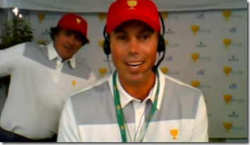 A Classic Dufner photobomb during an interview with Matt Kuchar during the 2012 Ryder Cup. Dufner finished the 3-1-0 in his matches in an upsetting loss for the United States.